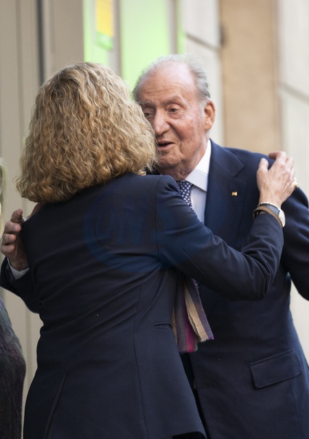Le roi Juan Carlos, la princesse Elena (Infante) - La famille royale d'Espagne à la sortie du restaurant Pa-Bu à Madrid, à l'occasion du 60ème anniversaire de la princesse Elena d'Espagne. Le 20 décembre 2023 Spanish Royals celebrate princess Elena 60th birthday with a family lunch at the Pa-Bu Restaurant . Madrid - December 20, 2023