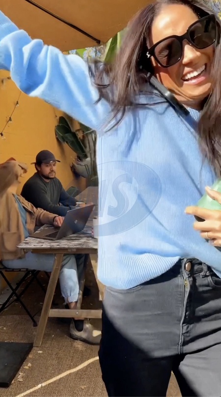 Pictures MUST credit: Clevr Blends Meghan Markle returns to acting — in an Instagram ad for a US coffee company. The Duchess of Sussex , 42, lurks in the background of a short promo for Clevr Blends; She is seen in various brief scenes stacking boxes, making hot drinks and working at a computer terminal. The mother-of-two also shows off her comedy chops by ailing to fist bump another member of the team as she walks off camera. Meghan has been an investor in the women-led wellness brand since 2020. He non-talking background role is played out behind CEO and co-founder Hannah Mendoza who walks around the company's HQ and thanks the team for all their hard work in 2023. Pcture supplied by JLPPA