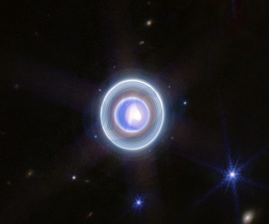 Pictures MUST credit: NASA, ESA, CSA, STScI A stunning new image of the planet Uranus has amazed astronomers and scientists showing a luminous, ringed world. The detailed images are from a compilation of shits by the James Webb space telescope launched into space in 2021 to take the most highly detailed images of the solar system and beyond . Uranus, the seventh planet from the Sun, is an ice giant, thought to be more than 80% icy water, ammonia, and methane surrounding a rocky core; Though Uranus' rings were imaged before, the new image adds the planet's faint Zeta ring, the one closest to the planet. The Webb image also shows 14 of the planet's 27 moons: Oberon, Titania, Umbriel, Juliet, Perdita, Rosalind, Puck, Belinda, Desdemona, Cressida, Ariel, Miranda, Bianca, and Portia. Picture supplied by JLPPA