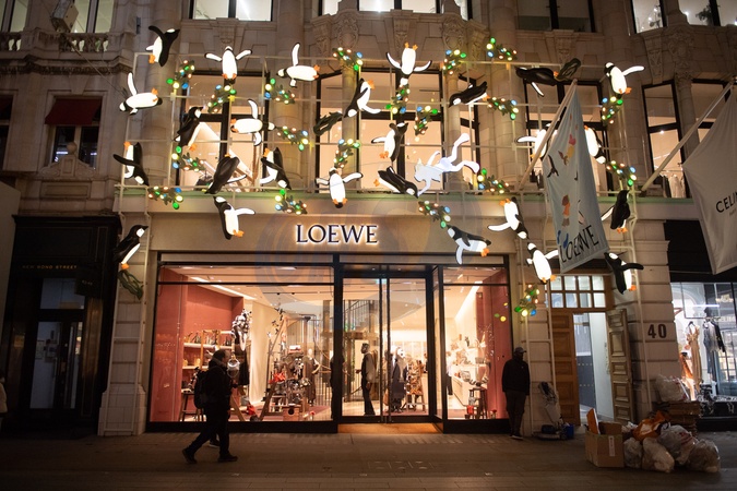 Shoppers view Christmas decorations at Loewe in New Bond Street in London, England, UK on Thursday 21 December, 2023 in the lead up to Christmas., Credit:Justin Ng / Avalon