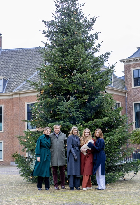 La reine Maxima et le roi Willem-Alexander des Pays-Bas avec la princesse Catharina-Amalia des Pays-Bas, la princesse Alexia des Pays-Bas et la princesse Ariane des Pays-Bas et le chien Mambo - La famille royale des Pays-Bas lors de la séance photographique hivernale au château Huis ten Bosch à La Haye, Pays-Bas, le 22 décemnre 2023. Christmas Photosession with King Willem-Alexander, Queen Maxima, Prinses Amalia, Princess Alexia and Princess Ariane and their dog Mambo.