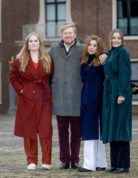 Le roi Willem-Alexander des Pays-Bas, les princesses Catharina-Amalia, Ariane et Alexia des Pays-Bas - La famille royale des Pays-Bas lors de la séance photographique hivernale au château Huis ten Bosch à La Haye, Pays-Bas, le 22 décembre 2023. Christmas Photosession with King Willem-Alexander, Queen Maxima, Prinses Amalia, Princess Alexia and Princess Ariane and their dog Mambo.