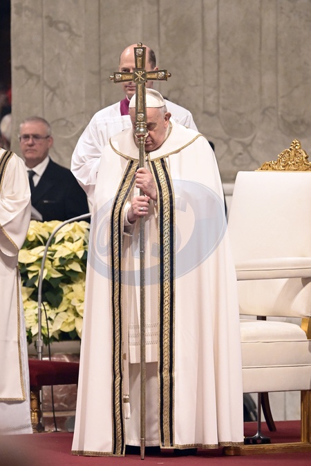 Pope Francis presides over the Christmas Eve Midnight mass in St Peter's Basilica at the Vatican on December 24, 2023.24 Dec 2023, Credit:Maria Laura Antonelli / Avalon