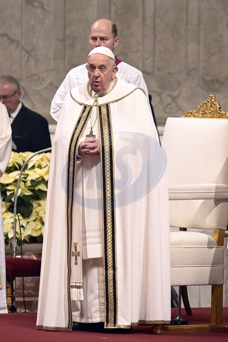 Pope Francis presides over the Christmas Eve Midnight mass in St Peter's Basilica at the Vatican on December 24, 2023.24 Dec 2023, Credit:Maria Laura Antonelli / Avalon