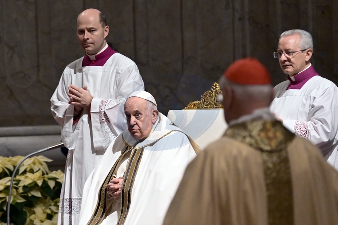 Pope Francis presides over the Christmas Eve Midnight mass in St Peter's Basilica at the Vatican on December 24, 2023.24 Dec 2023, Credit:Maria Laura Antonelli / Avalon