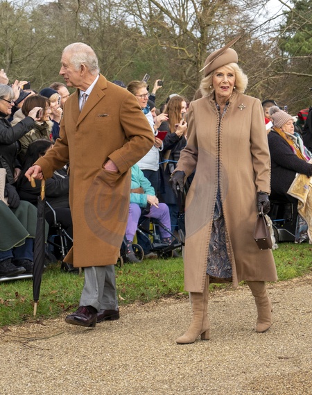 King Charles III and Queen Camilla attend Christmas Day service at St Mary Magdalene church, Sandringham, United Kingdom, on 25 December 2023., Credit:Arthur Edwards / Avalon