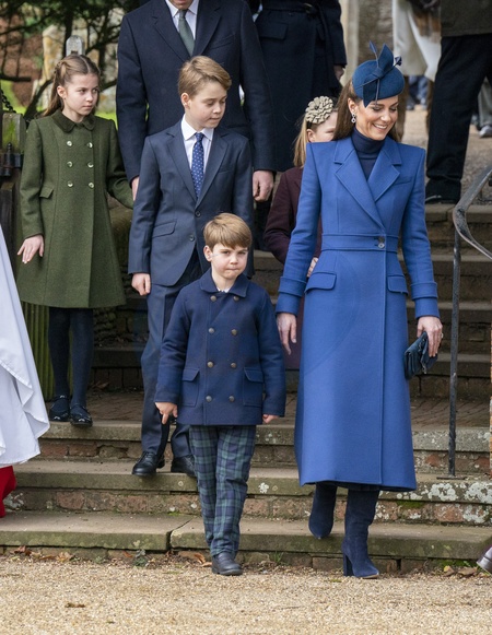 Catherine, Princess of Wales, Princess Charlotte, Prince George and Prince Louis attend Christmas Day service at St Mary Magdalene church, Sandringham, United Kingdom, on 25 December 2023., Credit:Arthur Edwards / Avalon
