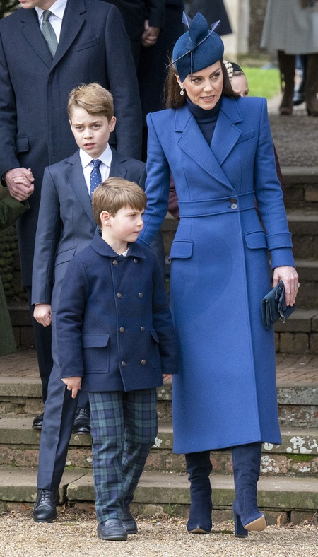 Catherine, Princess of Wales, Prince George and Prince Louis attend Christmas Day service at St Mary Magdalene church, Sandringham, United Kingdom, on 25 December 2023., Credit:Arthur Edwards / Avalon