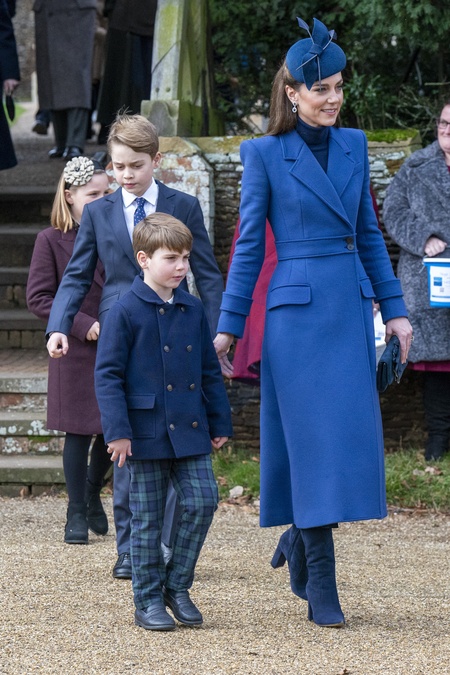 Catherine, Princess of Wales, Prince George and Prince Louis attend Christmas Day service at St Mary Magdalene church, Sandringham, United Kingdom, on 25 December 2023., Credit:Arthur Edwards / Avalon