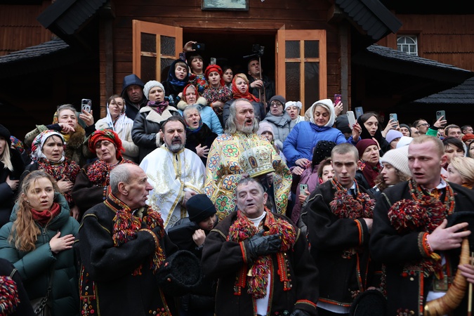 IVANO-FRANKIVSK REGION, UKRAINE - DECEMBER 25, 2023 - Participants of the Hutsul Koliada festivities (Christmas caroling), Kryvorivnia, Ivano-Frankivsk Region, west-central Ukraine, Credit:Yurii Rylchuk / Avalon