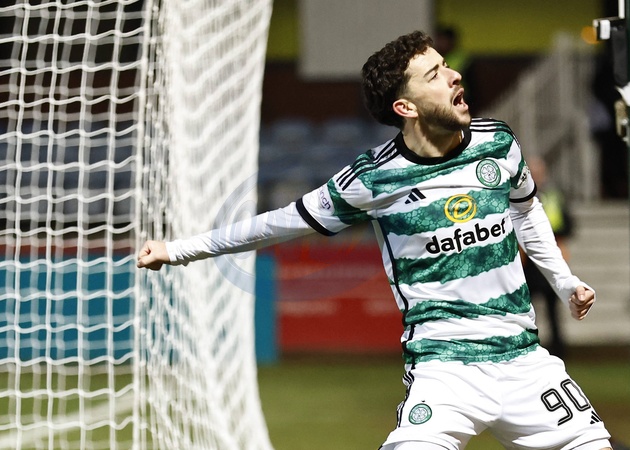 Dundee v Celtic cinch Premiership Mikey Johnston of Celtic celebrates scoring his teams third goal during the cinch Premiership match at Scot Foam Stadium, Dundee Copyright: xFredxPalmerx FIL-19424-0061, Credit:IMAGO/Fred Palmer / Avalon