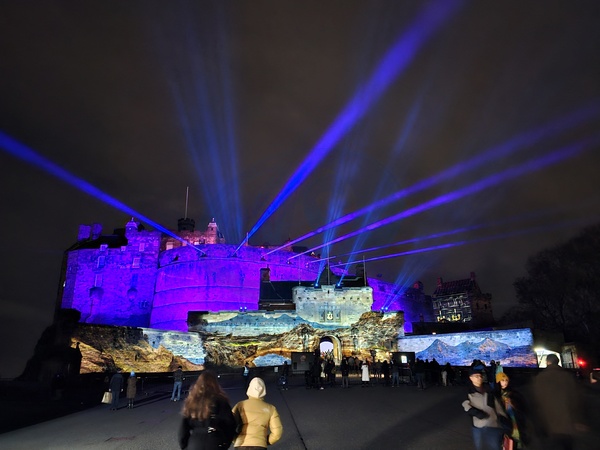 Château de lumière, Magie et Mystère au château d'Édimbourg - Illuminations de Noël à Édimbourg, Écosse, le 22 Décembre 2023. © Bertrand Rindoff / Bestimage Castle of Light, Magic and Mystery at Edinburgh Castle - Christmas Lights in Edinburgh, Scotland, December 22, 2023