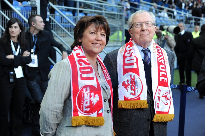 Martine Aubry et son père Jacques Delors lors de la finale de la coupe de France PSG (Paris Saint-Germain) / Lille à Saint-Denis le 14 mai 2011. Jacques Delors, figure de la construction européenne, est mort à 98 ans L'ancien président de la Commission européenne "est décédé ce matin (mercredi) à son domicile parisien dans son sommeil", a annoncé à l'AFP sa fille Martine Aubry, maire socialiste de Lille. Le président Emmanuel Macron a rendu hommage à l'"inépuisable artisan de notre Europe". © JB Autissier / Panoramic / Bestimage Martine Aubry and her father Jacques Delors at the PSG (Paris Saint-Germain) / Lille French Cup final in Saint-Denis on 14 May 2011. Jacques Delors, a leading figure in European integration, has died aged 98 The former President of the European Commission "died in his sleep this morning (Wednesday) at his home in Paris", his daughter Martine Aubry, the Socialist mayor of Lille, told AFP. President Emmanuel Macron paid tribute to the "tireless architect of our Europe".