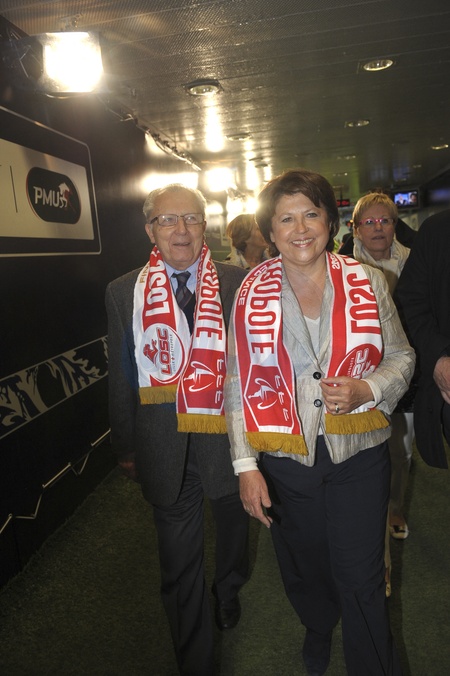 Martine Aubry et son père Jacques Delors lors de la finale de la coupe de France PSG (Paris Saint-Germain) / Lille à Saint-Denis