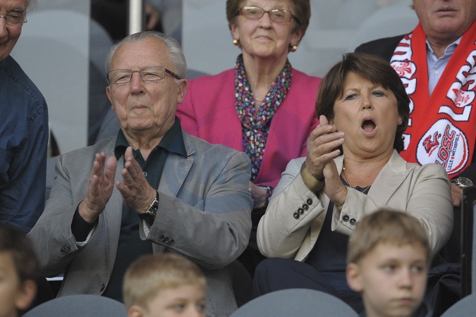 Martine Aubry et son père Jacques Delors lors de la finale de la coupe de France PSG (Paris Saint-Germain) / Lille à Saint-Denis