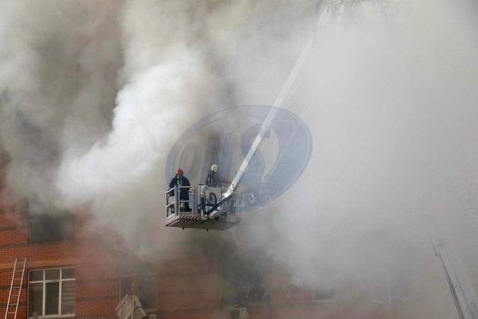 ODESA, UKRAINE - DECEMBER 29, 2023 - Firefighters employ an aerial platform to put out a fire at a residential building affected by the massive Russian missile and drone attack in Odesa, southern Ukraine., Credit:Nina Liashonok / Avalon