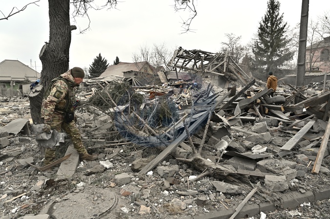 ZAPORIZHZHIA, UKRAINE - DECEMBER 29, 2023 - A law enforcer explores the rubble left from a house after the large-scale Russian missile and drone attack on Ukraine, Zaporizhzhia, southeastern Ukraine., Credit:Dmytro Smolienko / Avalon