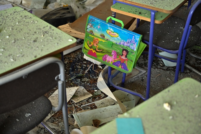 LVIV, UKRAINE - DECEMBER 29, 2023 - Schoolbag in the lyceum damaged by a Russian missile attack, Lviv, western Ukraine, Credit:Anastasiia Smoliyenko / Avalon