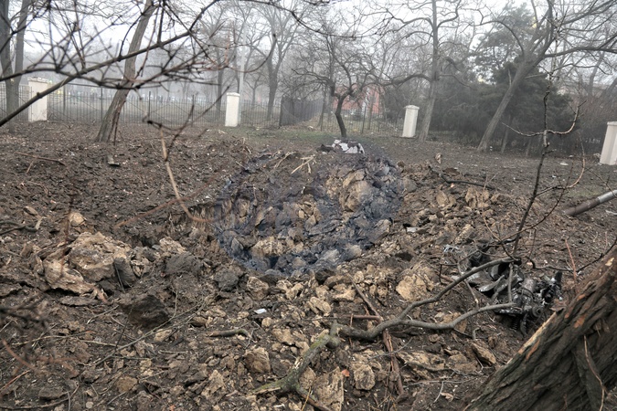 ODESA, UKRAINE - DECEMBER 29, 2023 - A shell crater at the site of a Russian missile debris fall, Odesa, southern Ukraine, Credit:Nina Lyashonok / Avalon
