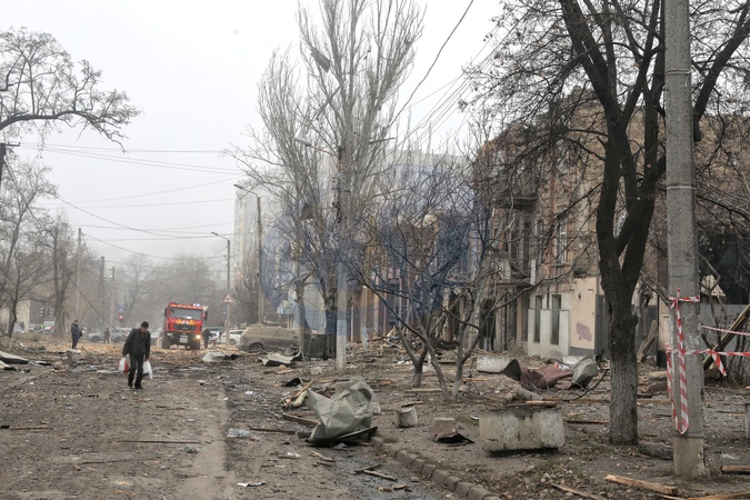 ODESA, UKRAINE - DECEMBER 29, 2023 - A rescuer climbs a ladder during the aftermath of a rocket attack on a residential building by Russian troops, Odesa, southern Ukraine, Credit:Nina Lyashonok / Avalon