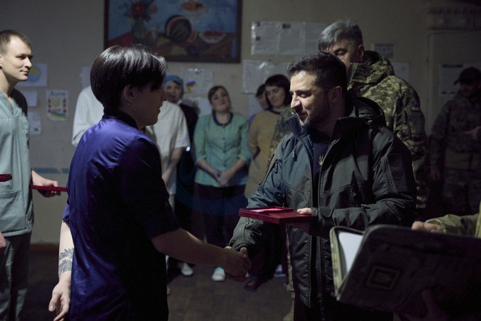 Prezydent Zelenski na froncie w Doniecku