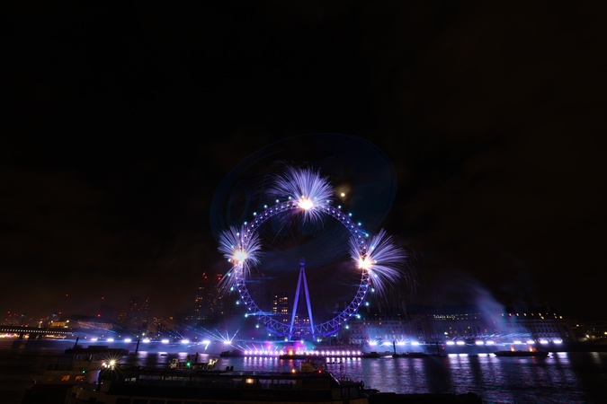 New Years firework display London 2024 at The London Eye on The River Thames 1 Jan 2024, Credit:celebrityphotos uk / Avalon