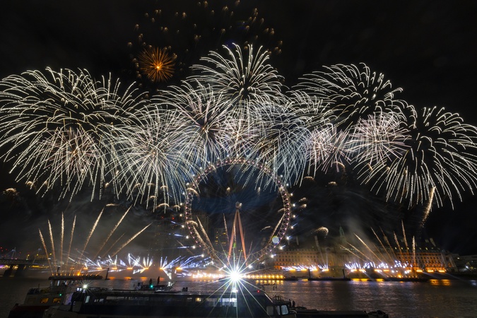 New Years firework display London 2024 at The London Eye on The River Thames 1 Jan 2024, Credit:celebrityphotos uk / Avalon