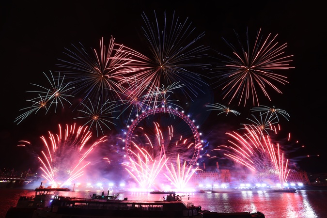 New Years firework display London 2024 at The London Eye on The River Thames 1 Jan 2024, Credit:celebrityphotos uk / Avalon