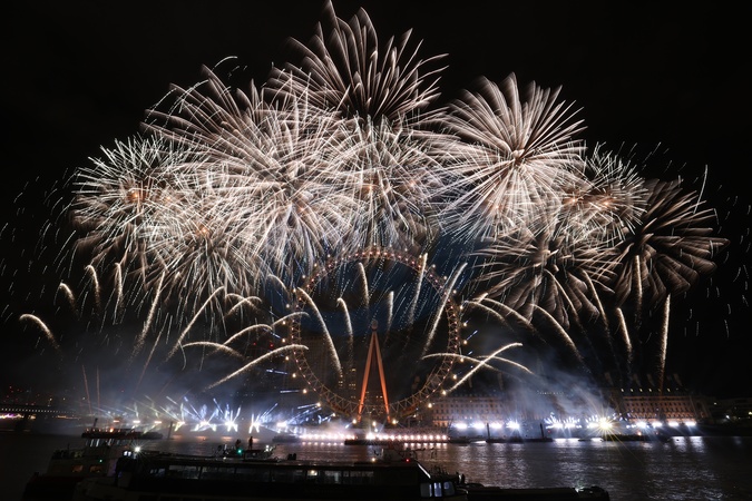 New Years firework display London 2024 at The London Eye on The River Thames 1 Jan 2024, Credit:celebrityphotos uk / Avalon