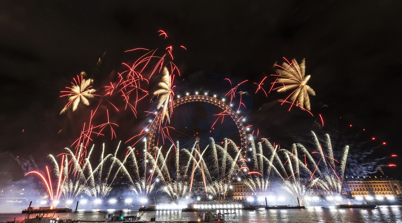 New Years firework display London 2024 at The London Eye on The River Thames 1 Jan 2024, Credit:celebrityphotos uk / Avalon