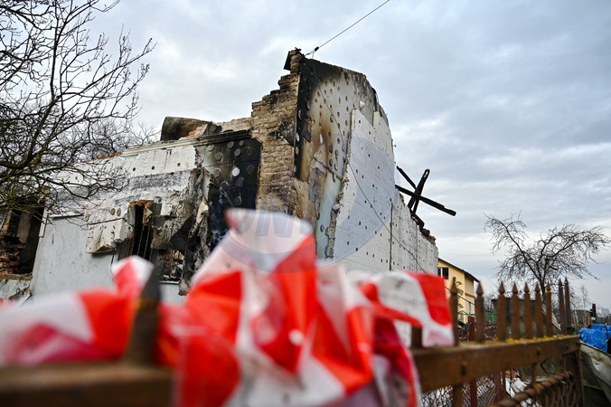 LVIV, UKRAINE - JANUARY 1, 2024 - The museum of Roman Shukhevych, the military leader of the Ukrainian Insurgent Army (UPA), lies in ruins in Bilohorshcha on the outskirts of Lviv, western Ukraine. According to preliminary reports, 10 Russian Shahed drones attacked the Lviv community on New Year's Eve. The falling debris of a Russian drone caused a fire at the Shukhevych Museum., Credit:Anastasiia Smolienko / Avalon