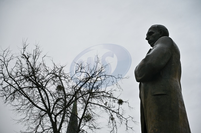 LVIV, UKRAINE - JANUARY 1, 2024 - The monument to Stepan Bandera is pictured during the prayer service for Ukraine held on the 115th birthday anniversary of the leader of the Organization of Ukrainian Nationalists (OUN-B), Lviv, western Ukraine., Credit:Anastasiia Smolienko / Avalon
