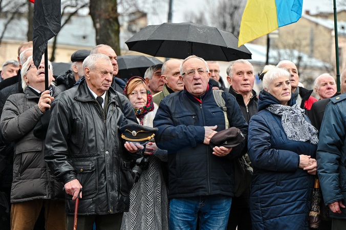 LVIV, UKRAINE - JANUARY 1, 2024 - Members of the public attend the prayer service for Ukraine held on the 115th birthday anniversary of the leader of the Organization of Ukrainian Nationalists (OUN-B) Stepan Bandera, Lviv, western Ukraine., Credit:Anastasiia Smolienko / Avalon