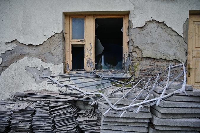 LVIV, UKRAINE - JANUARY 1, 2024 - A broken window is seen at the fire-stricken museum of Roman Shukhevych, the military leader of the Ukrainian Insurgent Army (UPA), ruined in the Russian drone attack in Bilohorshcha on the outskirts of Lviv, western Ukraine. According to preliminary reports, 10 Russian Shahed drones attacked the Lviv community on New Year's Eve. The falling debris of a Russian drone caused a fire at the Shukhevych Museum., Credit:Anastasiia Smolienko / Avalon