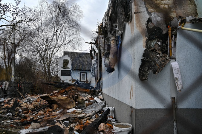 LVIV, UKRAINE - JANUARY 1, 2024 - The museum of Roman Shukhevych, the military leader of the Ukrainian Insurgent Army (UPA), lies in ruins in Bilohorshcha on the outskirts of Lviv, western Ukraine. According to preliminary reports, 10 Russian Shahed drones attacked the Lviv community on New Year's Eve. The falling debris of a Russian drone caused a fire at the Shukhevych Museum., Credit:Anastasiia Smolienko / Avalon