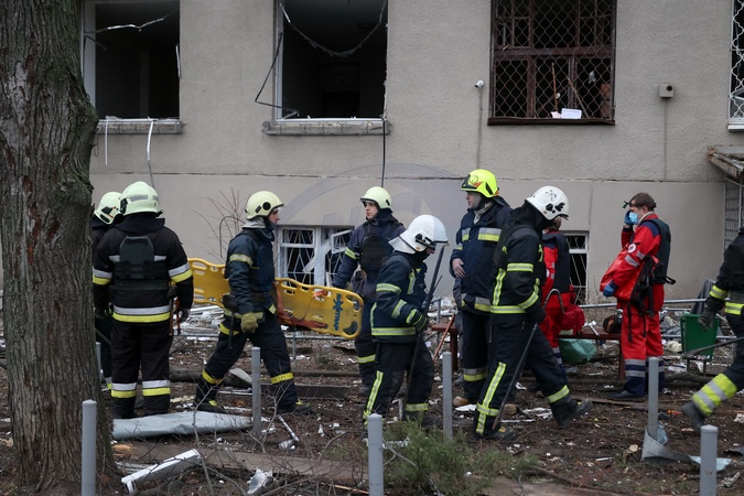 KHARKIV, UKRAINE - JANUARY 02, 2024 - Rescuers work at the site of the Russian missile attack, Kharkiv, north-eastern Ukraine., Credit:Vyacheslav Madiyevskyy / Avalon