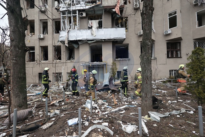 KHARKIV, UKRAINE - JANUARY 02, 2024 - Rescuers work at the site of the Russian missile attack, Kharkiv, north-eastern Ukraine., Credit:Vyacheslav Madiyevskyy / Avalon