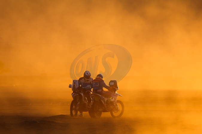 38 IGLESIAS SANCHEZ Eduardo (spa), Team Benergy Rally - Galicia Alidade, KTM, Moto, 130 CAMPOS Dono Javier (spa), Joyrace / Acampos, KTM, Moto, - Session d'essais du Dakar 2024 du 2 au 3 janvier 2024 à Al-Ula (Arabie Saoudite), le 2 janvier 2024. © Florent Gooden / Panoramic / Bestimage The Private Test of the Dakar 2024 from January 2 to 3, 2024 in Al-Ula, Saudi Arabia. January 2nd, 2024.