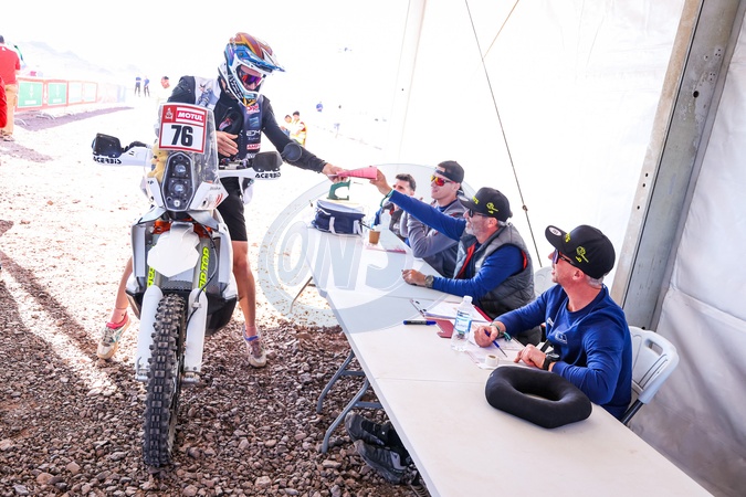 76 LEPAN Jean-Loup (fra), DUUST Diverse Racing, KTM, Moto, FIM W2RC, - Vérifications administratives et techniques du Dakar 2024 du 3 au 4 janvier 2024 à Al-Ula (Arabie Saoudite), le 3 janvier 2024. © Florent Gooden / Panoramic / Bestimage The Administrative and technical scrutineering of the Dakar 2024 from January 3 to 4, 2024 in Al-Ula, Saudi Arabia.