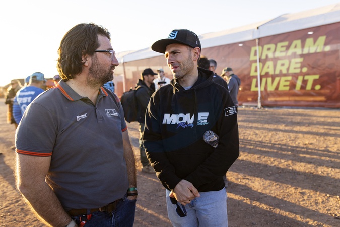 CASTERA David (fra), Directeur du Dakar, DUMONTIER Romain (fra), Team Dumontier Racing, Husqvarna, Moto, FIM W2RC, - Conférence Top Competitor du Dakar 2024 à Al-Ula (Arabie Saoudite), le 3 janvier 2024. © Julien Delfosse / Panoramic / Bestimage The Top Competitor conference of the Dakar 2024 on January 3, 2024 in Al-Ula, Saudi Arabia. January 3rd, 2024.