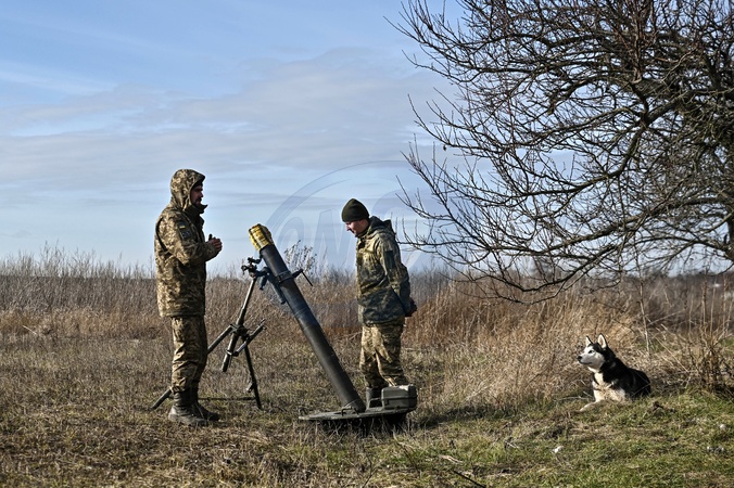 UKRAINE - DECEMBER 28, 2023 - Servicemen of an artillery unit of the 128th Mountain Assault Brigade of the Ukrainian Ground Forces stand by a 120mm mortar during a training session., Credit:Dmytro Smolienko / Avalon