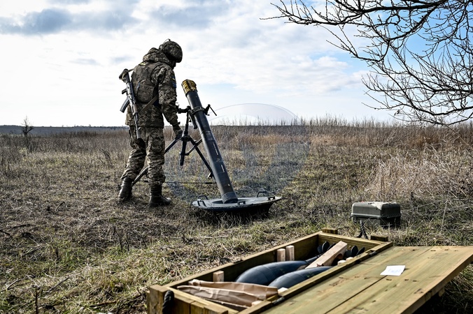 UKRAINE - DECEMBER 28, 2023 - A serviceman of an artillery unit of the 128th Mountain Assault Brigade of the Ukrainian Ground Forces trains to use a 120mm mortar during a training session., Credit:Dmytro Smolienko / Avalon