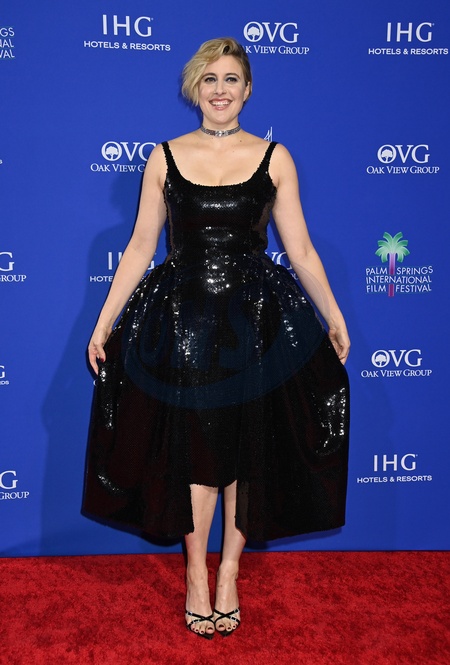 Greta Gerwig arriving at the 2024 Palm Springs International Film Festival Film Awards held at the Palm Springs Convention Center on January 4, 2024 in Palm Springs, CA.© Tammie Arroyo / AFF-USA.com