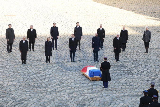Narodowy hołd dla pana Jacques’a Delorsa na głównym dziedzińcu Hôtel National des Invalides w Paryżu