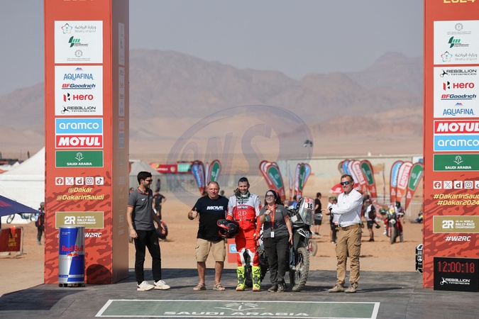 16 DUMONTIER Romain (fra), Team Dumontier Racing, Husqvarna, Moto, FIM W2RC, start podium, during the Al Ula Start Camp Ceremony of the Dakar 2024 on January 4, 2024 in Al-Ula, Saudi Arabia. © Antonin Vincent/DPPI/Panoramic/Bestimage