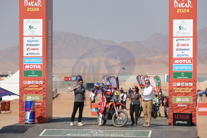 04 SUNDERLAND Sam (gbr), Red Bull KTM GasGas Factory Racing, GasGas, Moto, start podium, during the Al Ula Start Camp Ceremony of the Dakar 2024 on January 4, 2024 in Al-Ula, Saudi Arabia. © Antonin Vincent/DPPI/Panoramic/Bestimage