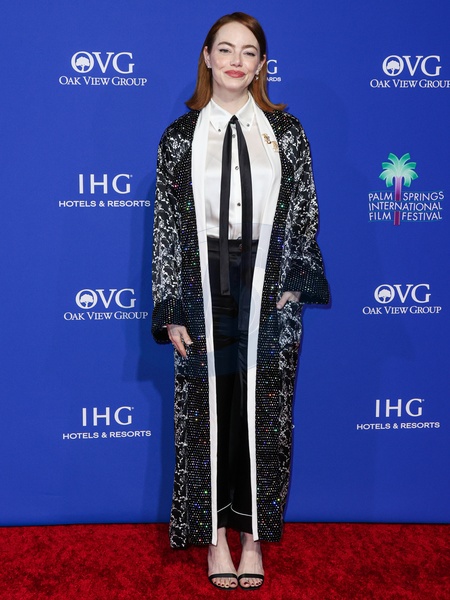 PALM SPRINGS, RIVERSIDE COUNTY, CALIFORNIA, USA - JANUARY 04: Emma Stone wearing custom Louis Vuitton arrives at the 35th Annual Palm Springs International Film Festival Film Awards held at the Palm Springs Convention Center on January 4, 2024 in Palm Springs, Riverside County, California, United States., Credit:Xavier Collin / Avalon
