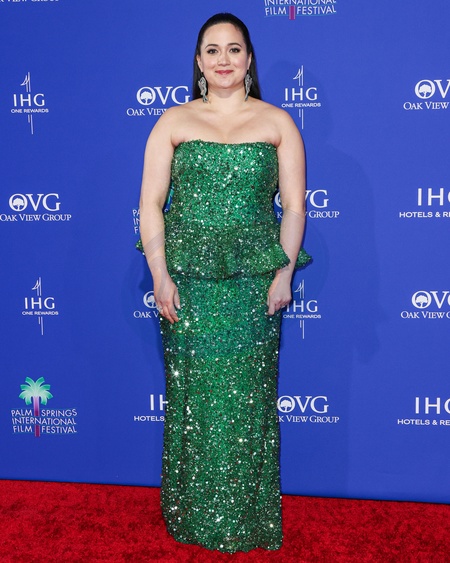 PALM SPRINGS, RIVERSIDE COUNTY, CALIFORNIA, USA - JANUARY 04: Lily Gladstone wearing a custom Rodarte dress arrives at the 35th Annual Palm Springs International Film Festival Film Awards held at the Palm Springs Convention Center on January 4, 2024 in Palm Springs, Riverside County, California, United States., Credit:Xavier Collin / Avalon