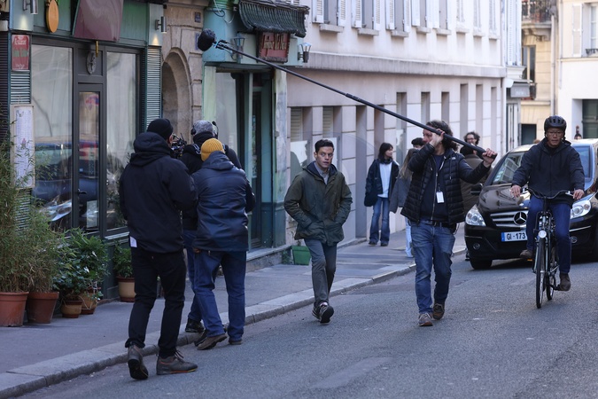 Exclusif - Rami Malek sur le tournage de son dernier film à Paris, France, le 5 janvier 2024. No Web pour la Belgique et la Suisse Exclusive - For Germany Call For Price - Rami Malek on the set of his latest film in Paris, France, on January 5, 2024.