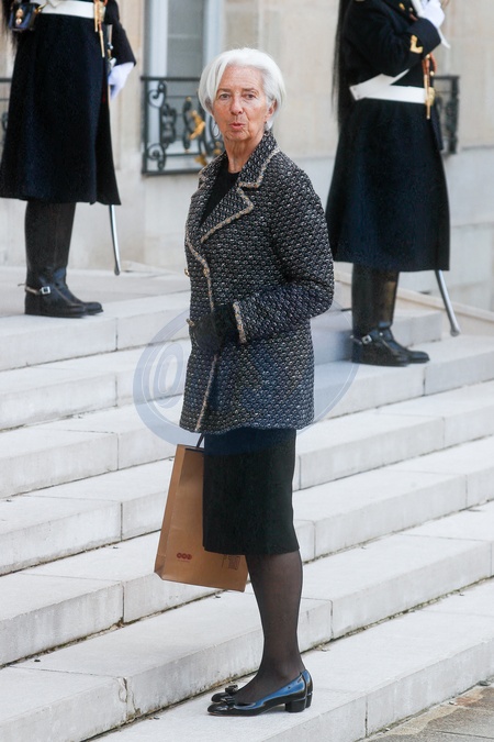 Christine Lagarde, présidente de la Banque centrale européenne - Dans le cadre de l'hommage national à M. Jacques Delors, le Président de la République reçoit pour un déjeuner les chefs d'Etat et de gouvernement européens et les représentants des institutions européennes au palais présidentiel de l'Elysée à Paris, France, le 5 janvier 2024. Delors, figure de la création de l'euro (€), est décédé le 27 décembre 2023 à l'âge de 98 ans.© Christophe Clovis/Bestimage Lunch following a national tribute ceremony for late French minister and European Union Commission president Jacques Delors at the Elysee palace in Paris, France, on January 5, 2024. Delors, a figure in the creation of the euro (€), died on December 27, 2023 aged 98.